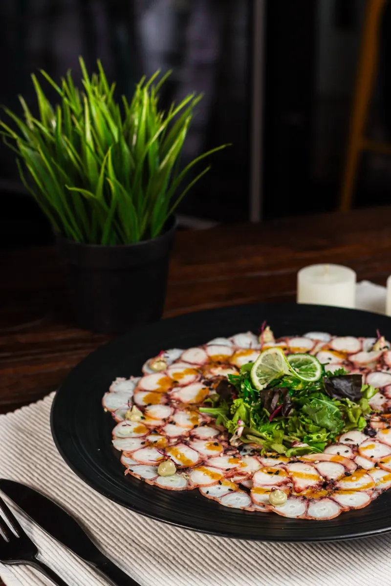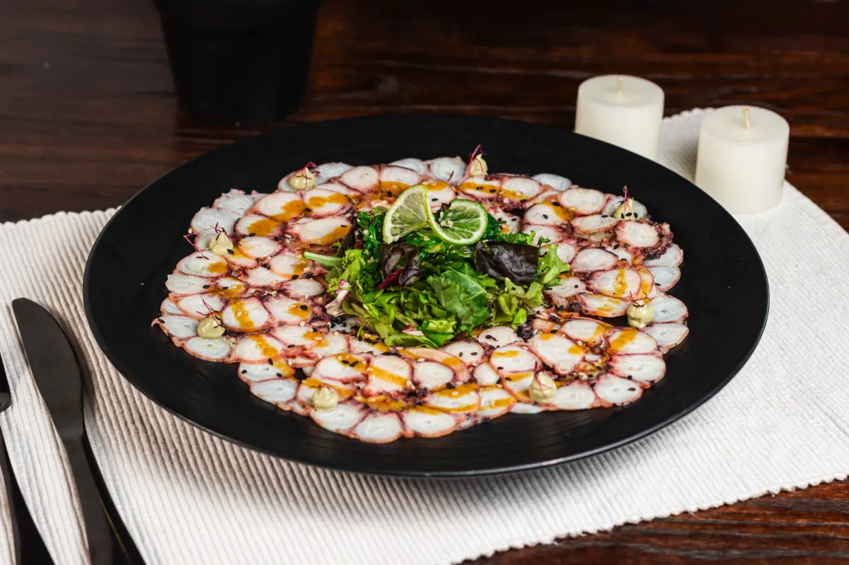 Inicio / Carpaccios / El Náufrago El Náufrago$14,00 Carpaccio de pulpo con vinagreta dela casa, wakame, y crema de aguacate Pan saludable Pan saludable (+$1,50) Product total $14.00 Addons total $0 Totals $14.00 El Náufrago cantidad Añadir al carrito Categoría: Carpaccios Descripción Descripción Ingredientes: Carpaccio de pulpo con vinagreta dela casa wakame crema de aguacate Productos relacionados Moby Dick $13,00 Añadir al carrito La Culpa es de la Vaca $13,00 Añadir al carrito